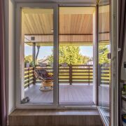 Окна – двухкамерные стеклопакеты, ламинированный профиль + подоконники из массива.