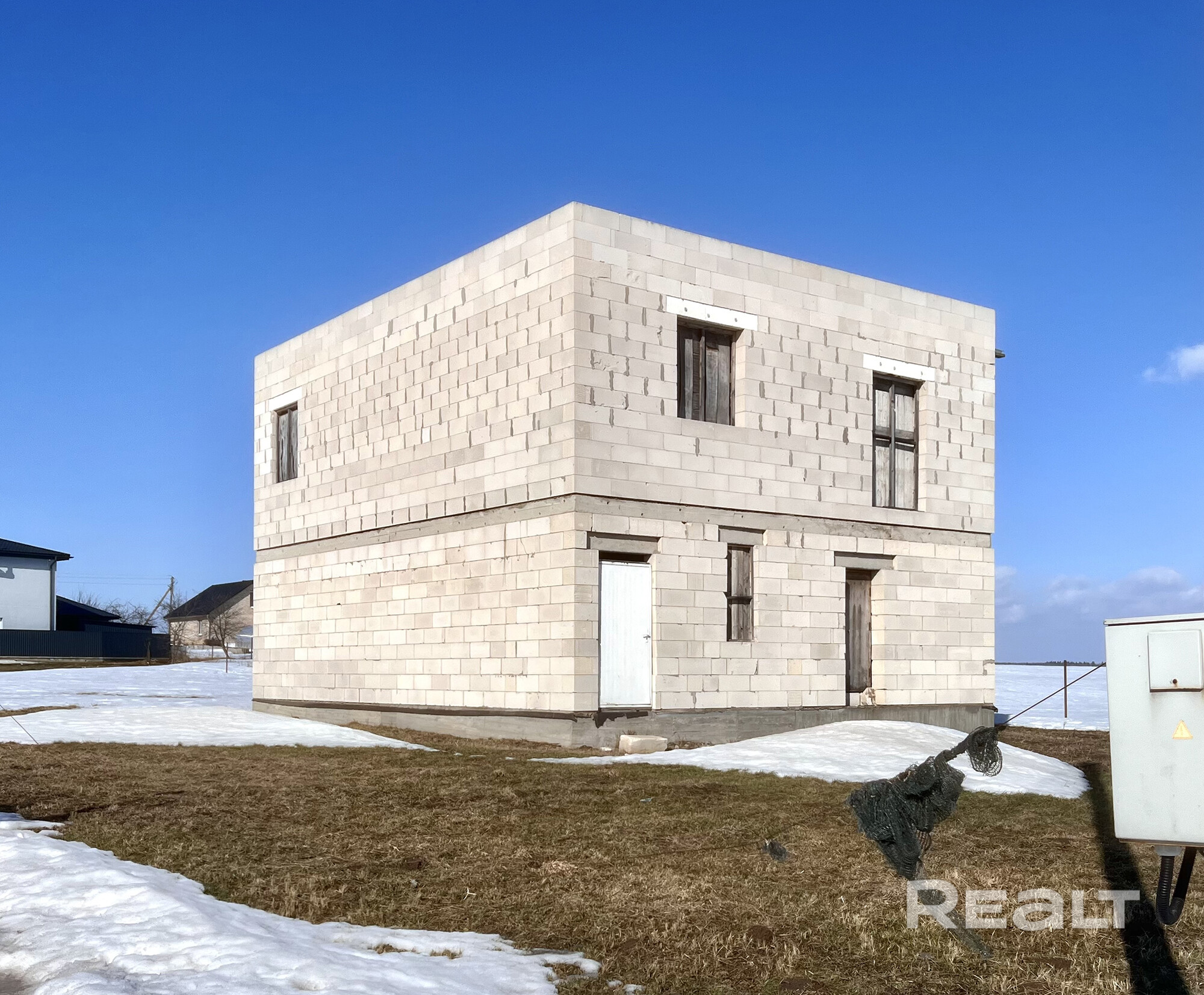 20 км. д. Столбуновичи. Крепкая коробка 9×12: ЖБ перекрытия, потолки 3+ м, 30 кВт. Асфальт, интернет, озеро рядом 🌿