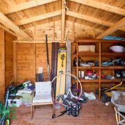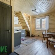 На участке гостевой домик из бруса и хозблок. Яблони, малина.