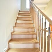 - Лестница с поручнями и ступенями из ясеня.