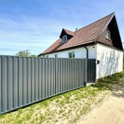 - Въездные ворота с электроприводом, открываются с пульта.
