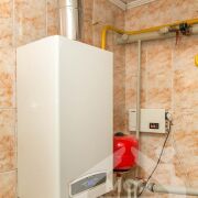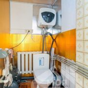 -Отопление газовое, с котлом, при этом сохранён твердотопливный котёл как резервный вариант - это разумное решение с точки зрения автономности. Вода заведена в дом, канализация местная.