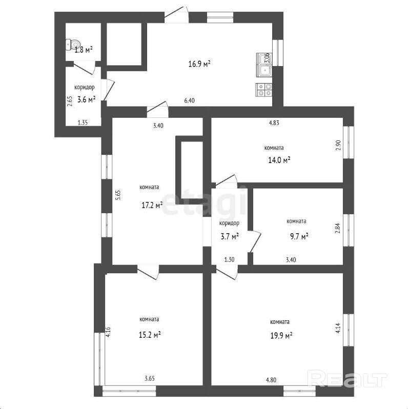 16.9 м²