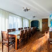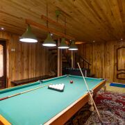 В одном из домов предусмотрен банкетный зал, баня с бассейном, бильярдная комната, крытая беседка, а также зона барбекю. В доме много изолированных комнат. Отопление – электрокотел (льготный тариф), канализация местная. Дома продаются с мебелью.
