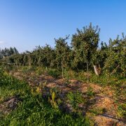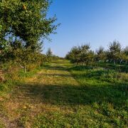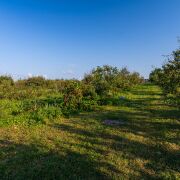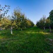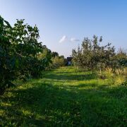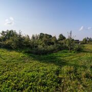 Территория в 25 соток, на которой расположены два дома, пруд с рыбами, огромный сад с плодовыми деревьями (80 груш и 100 яблонь), 700 кустов голубики, орехи, другие кустарники.