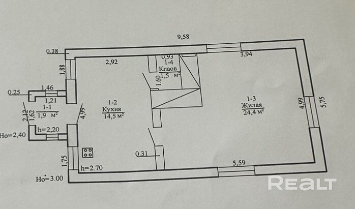 • Площадь кухни
