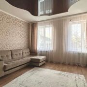 - Три просторные жилые комнаты позволяют комфортно разместить семью или создать отдельные функциональные зоны. Комнаты отделаны практичным линолеумом. В кухне (8,7 м2) уложен качественный ламинат, а потолок выполнен в современной натяжной технике, придающей помещению свежий и ухоженный вид. Полностью оборудованная кухня включает всю необходимую мебель и технику. В зале также установлен стильный натяжной потолок, создающий атмосферу уюта и современности.