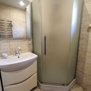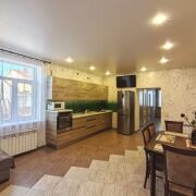 Стены покрыты декоративной штукатуркой под лаком – это не только фактурно, но и практично. Ровные натяжные потолки со встроенным зонированным освещением создают тот самый «дорогой» свет, который преображает любое помещение. Межкомнатные двери - массив дерева на магнитных доводчиках (закрываются мягко без хлопков).