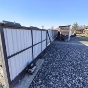 Дом расположен на земельном участке (форма собственности - частная) площадью 15 соток. Участок ухожен, имеет ровную геометрию, посеян газон и туи. Огорожен забором из металлопрофиля. Установлены раздвижные ворота, которые открываются с пульта.
