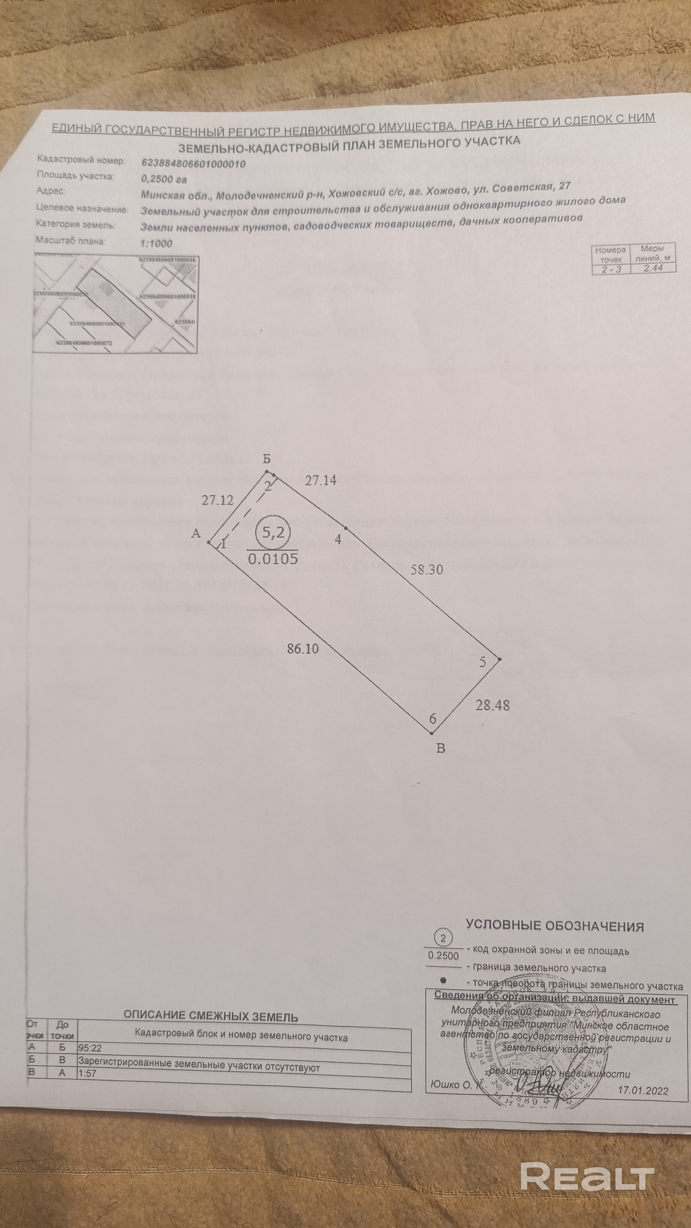 - Площадь участка