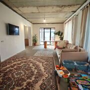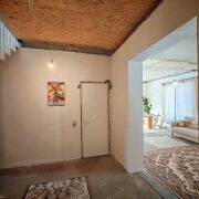 · 1 уровень (активный): Огромная гостиная-столовая (34.5 м2) с выходом на террасу (12 м2), гостевая комната, гардеробная. Сердце дома — котельная с постирочной.