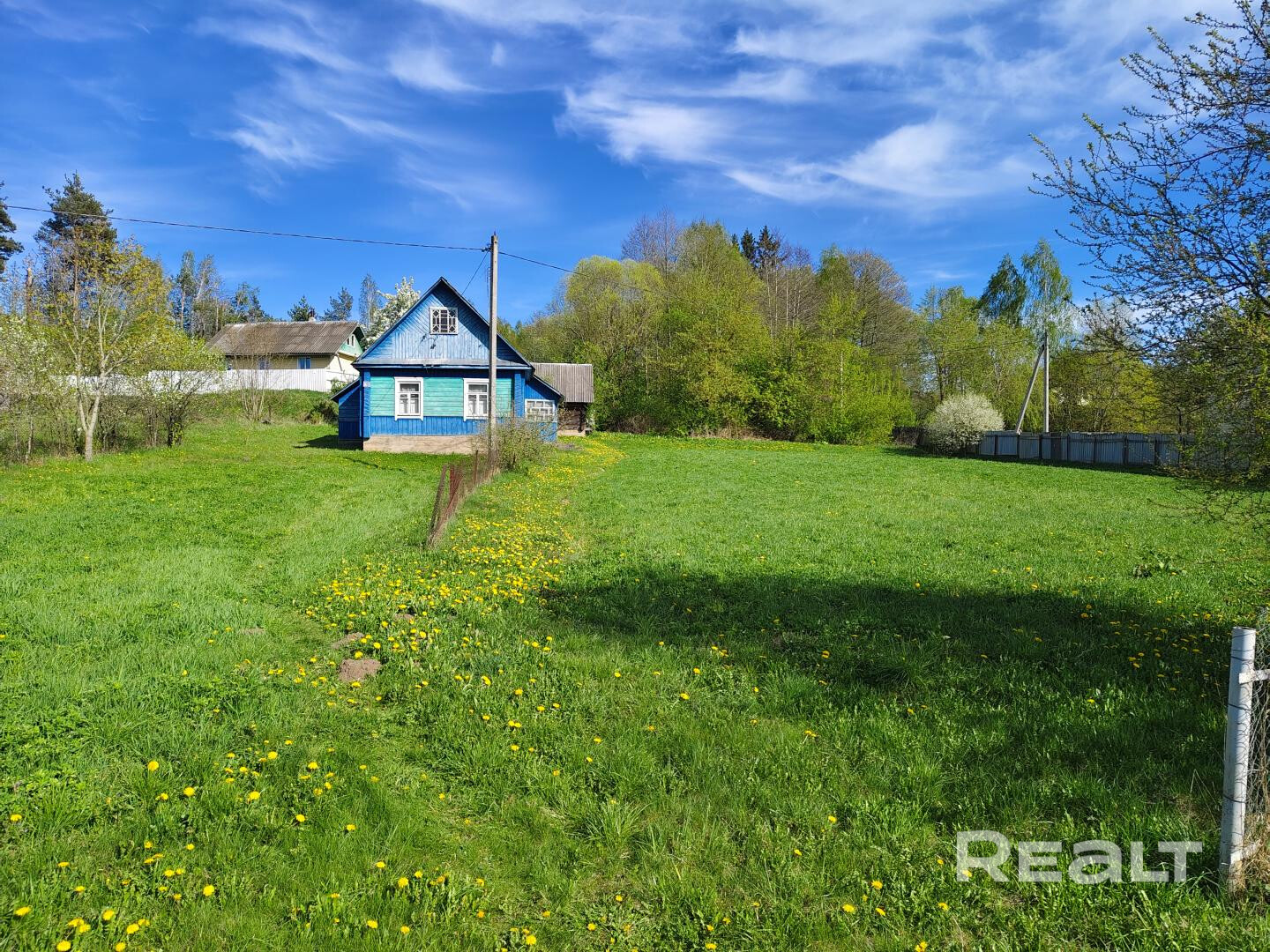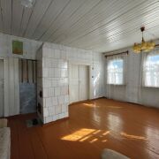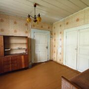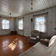 Дом — добротный деревянный сруб. Без лишнего пафоса, но сделан на совесть. Крыша шифером — практично, не течет, не шумит. Внутри тепло и по-своему уютно.Дом стоит на возвышенности. Весной здесь сухо, с территории открывается хороший вид.