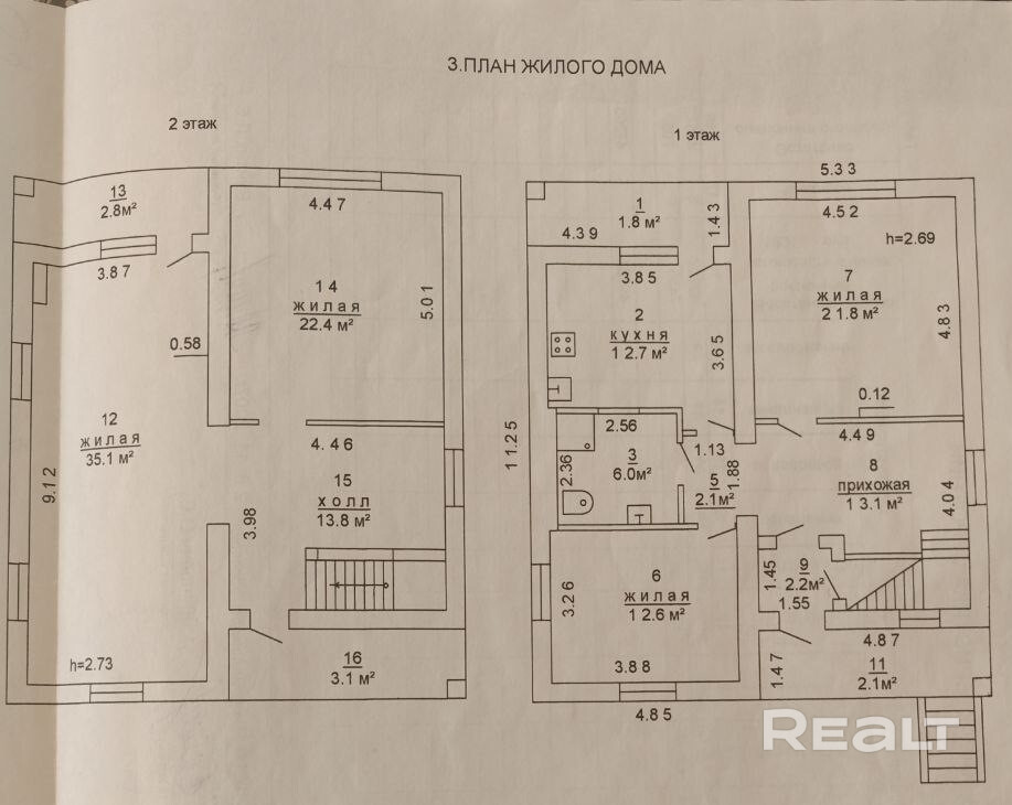 Планировка: 2 просторные кухни, большая гостиная, светлые спальни, помещения для отдыха/работы, техпомещения, большой санузел с душевой (функция парилки), гараж на 2 авто, полноценный чердак.