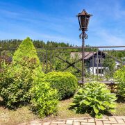 Возле дома малоуходный сад непрерывного цветения, созданный хозяевами с любовью: декоративные кустарники и деревья. В нижней части участка - сад с диковинными плодовыми деревьями.