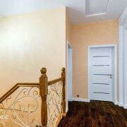 На полу: в местах общего пользования – испанский керамогранит с системой подогрева пола, во всех жилых комнатах – высокого класса износостойкости ламинат.