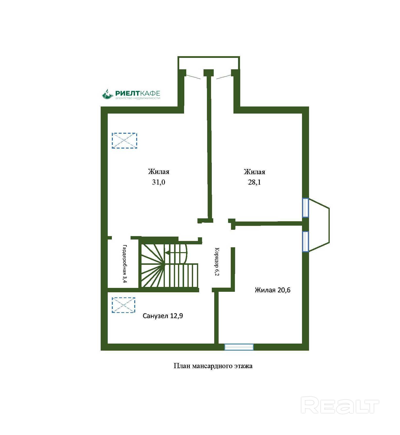 - 3 отдельные большие комнаты (20,6/28,1/31,0 кв.м);
