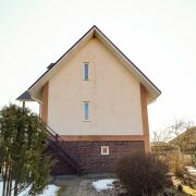 -стены дома-деревянный каркас по канадской технологии, стены утеплены снаружи и оштукатурены. Стены цокольного этажа-бетонные блоки, утепленные снаружи и обшиты пластиковыми панелями.