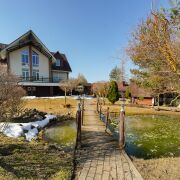 -Участок площадью 21, 08 сотки выровнен и грамотно распланирован: трехэтажный коттедж с открытой просторной террасой, баня (с гостиной, парной, санузлом, душевой), беседка с печью барбекю, навес для автомобиля, детский игровой домик, небольшой прудик с карасиками, зона под посадки овощей-фруктов, фруктовые деревья.