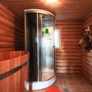 Стены бани – качественный сруб. Крыша из металлочерепицы. Парная на дровах, санузел, душевая, купель