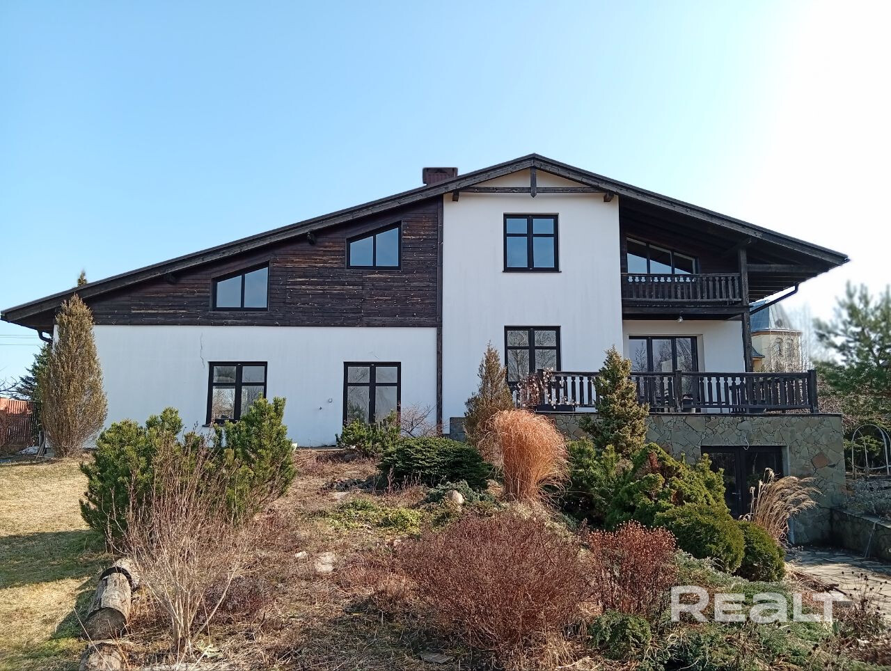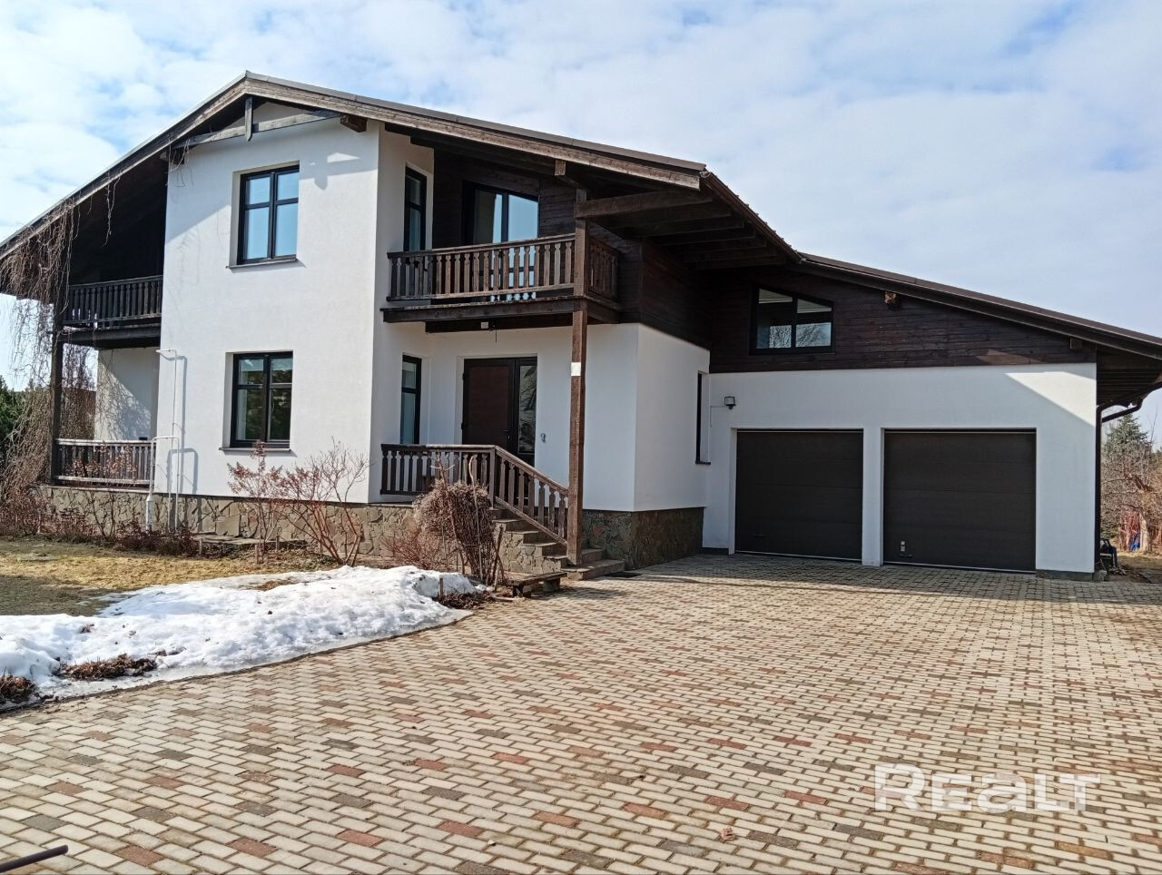 Продается современный 3-уровневый коттедж, архитектор Tatiana Kotello (Латвия). 5 спален, 3 санузла, площадью 406.7м² в престижном, расположенном в тихом, рядом с "Минским морем" , экологически чистом месте, в а/г Сёмково, на участке 25 соток (форма собственности частная). Дом возведён из газосиликатных блоков на бетонном фундаменте с цокольным этажом, бетонные перекрытия. Фальцевая кровля (Finland). Отделка- декоративная штукатурка, натуральный камень, дерево. Качественные энергосберегающие стеклопакеты с ламинацией. Идеально ориентирован по сторонам света. Планировка и особенности дома 1этаж -прихожая -просторная гостиная со вторым светом и выходом на террасу -кухня с балконом. Есть всё необходимое оборудование (газовая плита, электропечь, посудомоечная машина) -спальня -санузел и душевая -постирочная -техническая раковина, стиральная и сушильная машины, система хранения, с выходом в сад -выход в гараж Терраса 7.9м² (террасная доска из лиственницы) с видом на сад и шикарные закаты Промежуточный этаж -гостевая комната -кладовая-гардеробная 2 этаж -3 спальные комнаты с балконами -гардеробная -спа - ванна, душ, санузел Цокольный этаж -дровяная печь с системой отопления верхних этажей и групкой для приготовления пищи -спортзал с тренажёрами -котельная -складское помещение -техническое помещение с санузлом -комната отдыха с выходом в сад и зону барбекю -овощехранилище Участок 25 соток, ландшафтный дизайн с прудом и большой коллекцией (более тысячи) взрослых декоративных хвойных и лиственных растений, плодовых деревьев и кустов. Качель. Газон. Спортивная площадка оборудована футбольными воротами, волейбольной сеткой и баскетбольным кольцом. Гараж -отапливаемый гараж 40.7м² на две машины с электрическими роллетами. Розетка 380в Инженерные системы: - современная топочная с газовой системой отопления радиаторов, теплых полов (весь 1 этаж и санузлы), установлен напольный газовый котел Vaillant -система защиты оборудования от скачков напряжения -стабилизатор напряжения и устройство защитного отключения -собственная скважина, насос -система очистки воды, станция обезжелезивания, система фильтрации питьевой воды, бойлер 300л Vaillant -электроснабжение 220в+380в, медная электропроводка -канализация местная(септик) Коммуникации и инфраструктура: Въездная зона и примыкание к дому вымощены тротуарной плиткой и натуральным камнем, оборудованы дождеприёмники, ливневая канализация. Участок со всех сторон огорожен забором. В конце участка есть технический проезд и ворота к нему. Улица очень широкая, асфальтированная, освещённая. До МКАД 7 км. Хорошее транспортное сообщение: автобус, маршрутное такси. Магазины, кафе, аптека, почта, медсанчасть, школа, детский сад, спортзал. Недалеко спа-комплекс "Сябры". Санаторий "Приморский". Озеро. Лес. Чистая продажа.