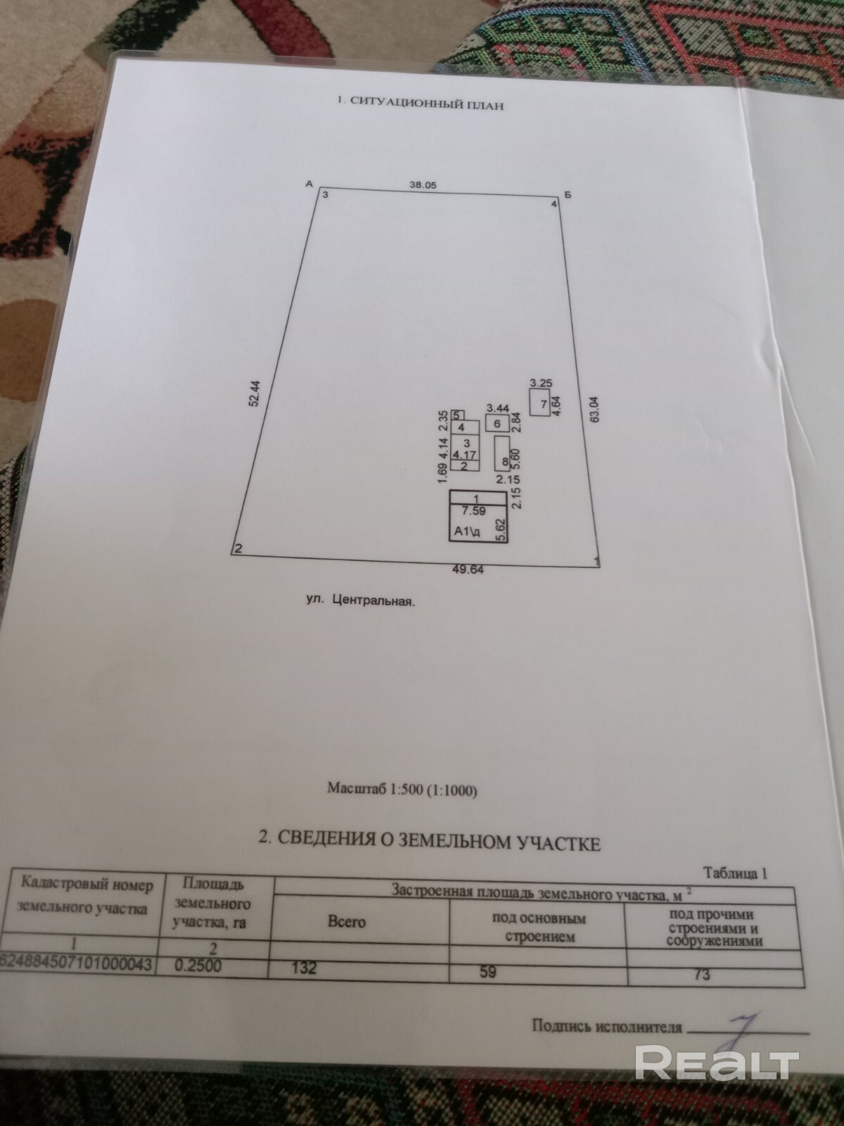 - Площадь участка