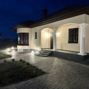 Выполнена наружная подсветка дома. Дом построен с разработкой проекта в соответствии с законодательными нормами.