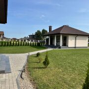 Территория: разработан ландшафтный дизайн, тротуарная плитка, газон, светильники декоративные. По периметру высажены кипарисы.