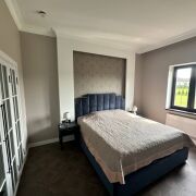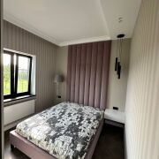 В доме 2 спальные комнаты с будуаром и системой хранения оборудованы мебелью, ортопедические матрасы производства Grandmanar, Askona 3 уровень жесткости. В комнатах просторные гардеробные, кабинет не оборудован мебелью.