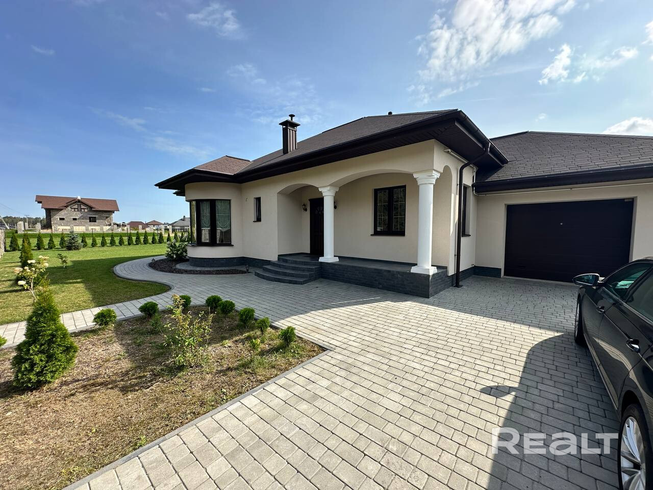- Основной шикарный дом блочный одноуровневый с гаражом. Общая площадь которого составляет 153.8 кв.м., жилая 61.1 кв.м., гостиная 45.3 кв.м. Готовность 100%.
