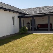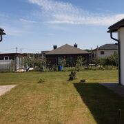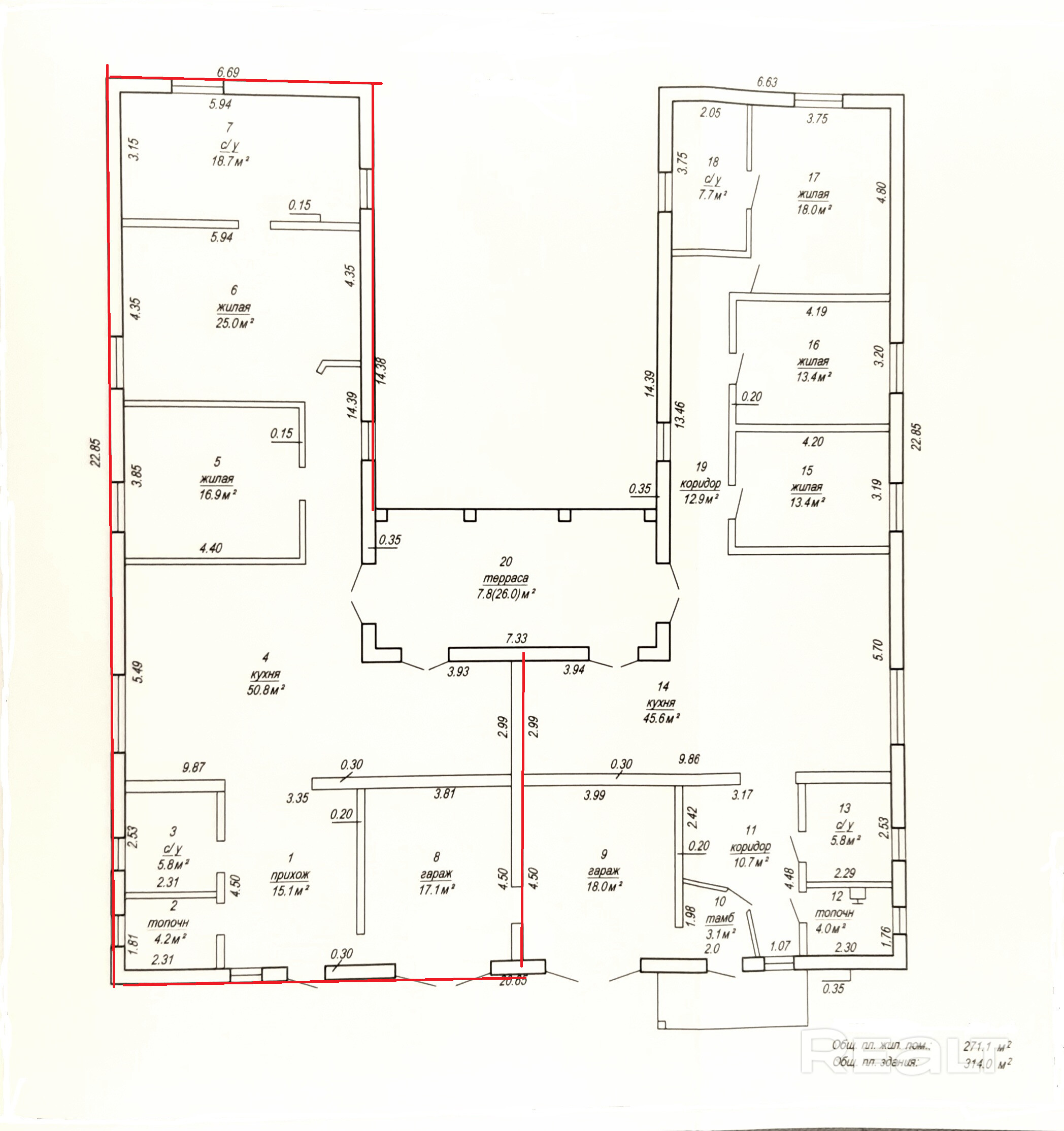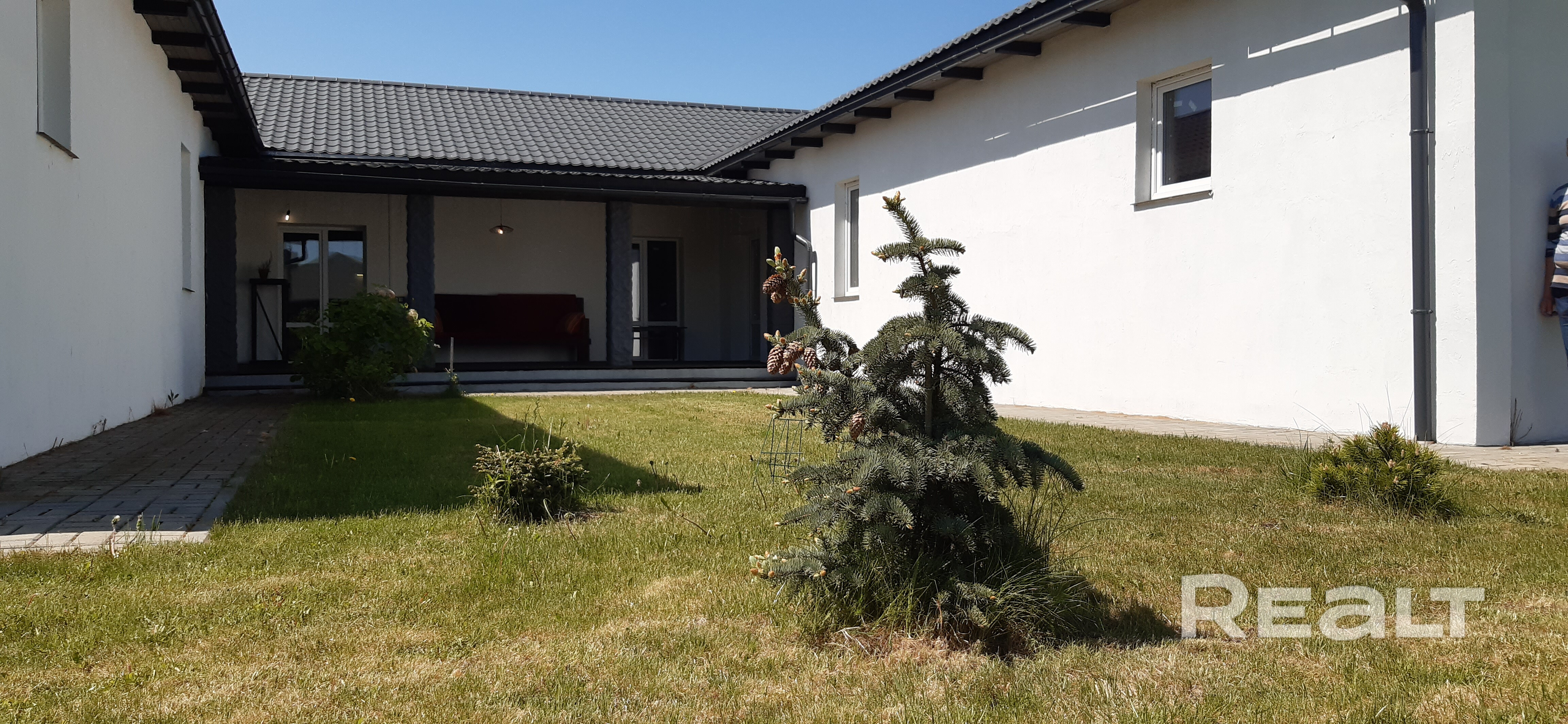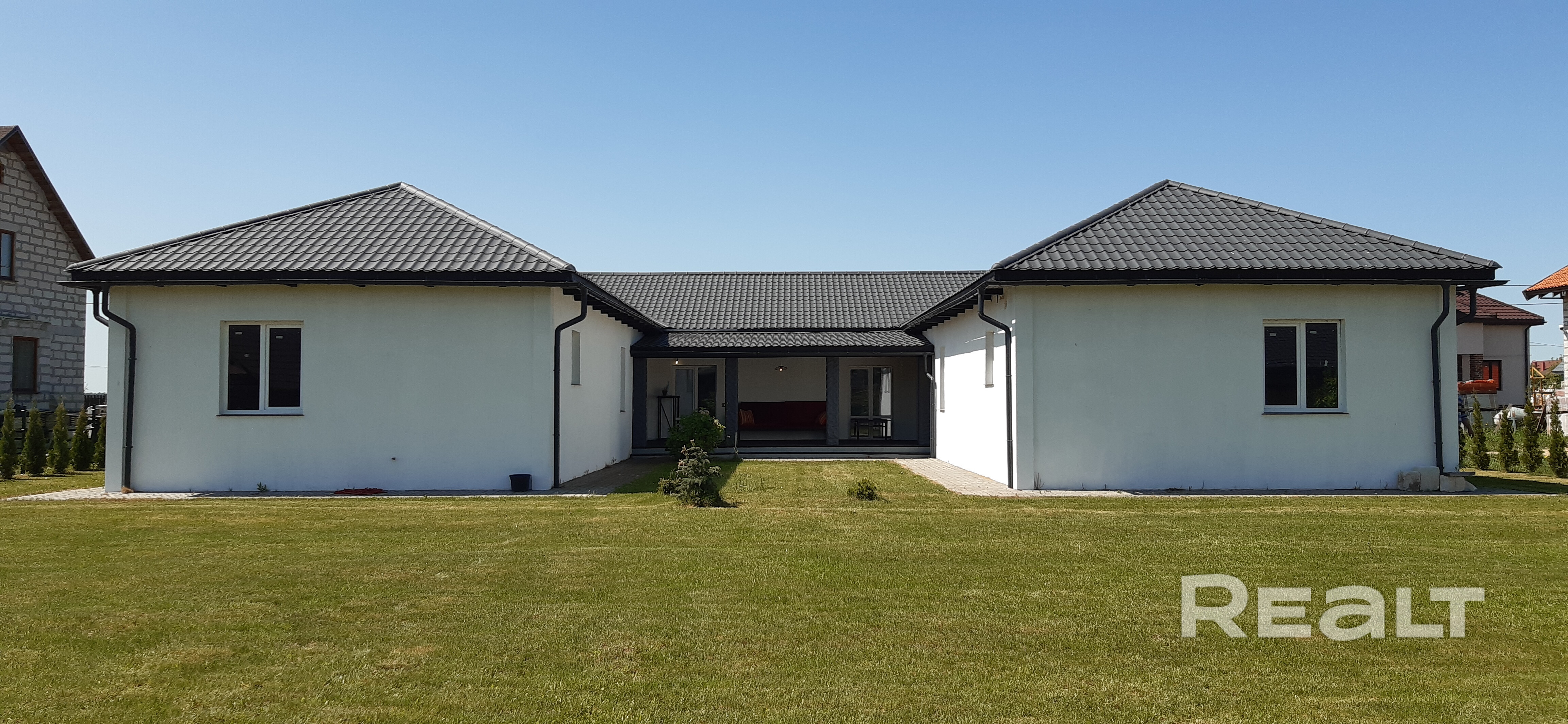 Состоит из 2-х автономных, в плане коммуникаций, половин.  Утеплен, оштукатурен, в  отделке дома использованы качественные материалы. Правая половина дома готова к проживанию. Просторная кухня-гостиная (45,6кв.м.) отапливается теплым полом. Кухонный гарнитур со  встроенной  техникой,  остается новому владельцу. С кухни-гостиной можно попасть на уютную террасу – общую для двух половин дома. В двух комнатах (по 13,4кв.м.) правой половины сделан ремонт и они так же готовы к проживанию. Два гаража удобно встроены в дом, имеют  независимые входы с жилых помещений.