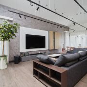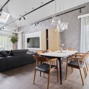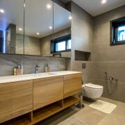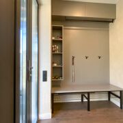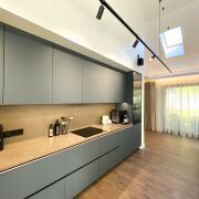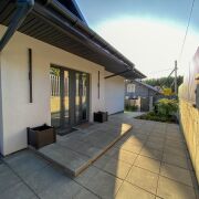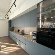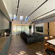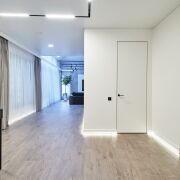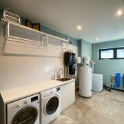 В доме второй свет- высота потолка в гостиной 4,99 м. Просторная кухня-гостиная 48 м2, 2 спальни, гардеробная, санузел с душевой кабиной и ванной. Большая хоз. комната, в которой размещены стиральная и сушильная машина, мойка, стеллажи для хранения, газовый котёл, система очистка воды и др.