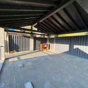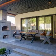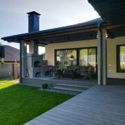 Терраса 55 м2 с зоной для отдыха, печью-камином.
