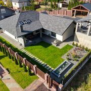 Участок 7,58 соток идеально спланирован, ровный газон, дренажная система, автополив, ландшафтное освещение. Большой навес для автомобилей.
