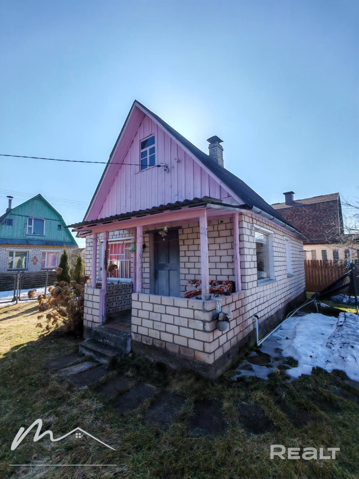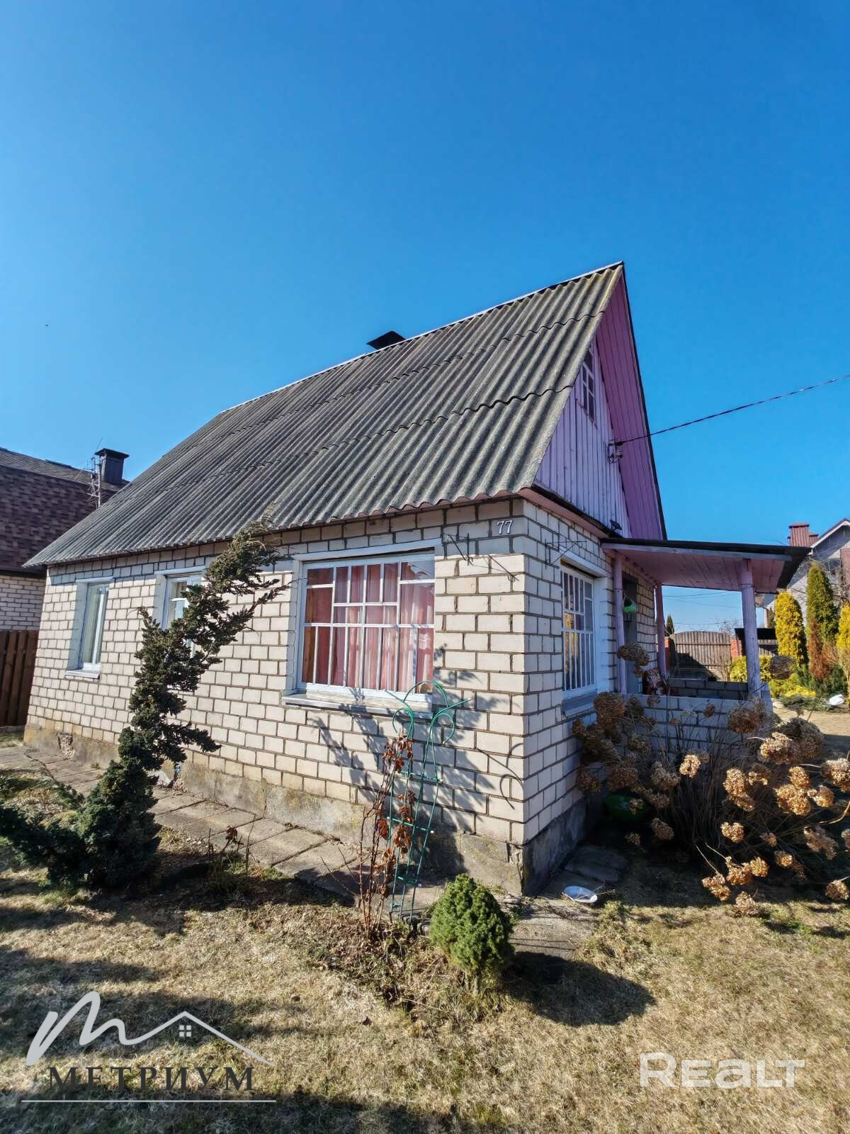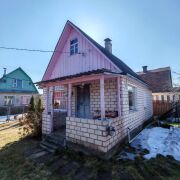 Дом в районе деревни Литвинково, 24 км от Минска, Логойское  направление. Хорошее транспортное сообщение. Дом находится в садовом товариществе «Стройиндустрия». Рядом лес. Участок 4,95 соток. На участке хоз блок, плодовые деревья.   Дом бревенчатый, обложен кирпичом. Печное отопление, электричество. Вода сезонная, введена в дом.