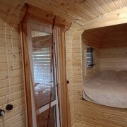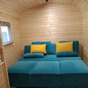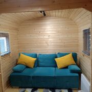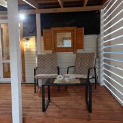 Первый домик (20 кв. м.) – это уютное пространство, продуманное до мелочей. Здесь вы найдете функциональную кухню, комфортное спальное место, уютную гостиную зону и собственный санузел. Из домика предусмотрен выход на просторную террасу, где так приятно проводить вечера в кругу близких или наслаждаться утренним кофе.