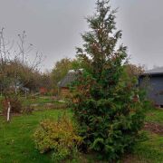 - Ландшафт: На участке уже растут плодовые и ягодные деревья, кусты голубики и разнообразные цветы, создавая живописный уголок.