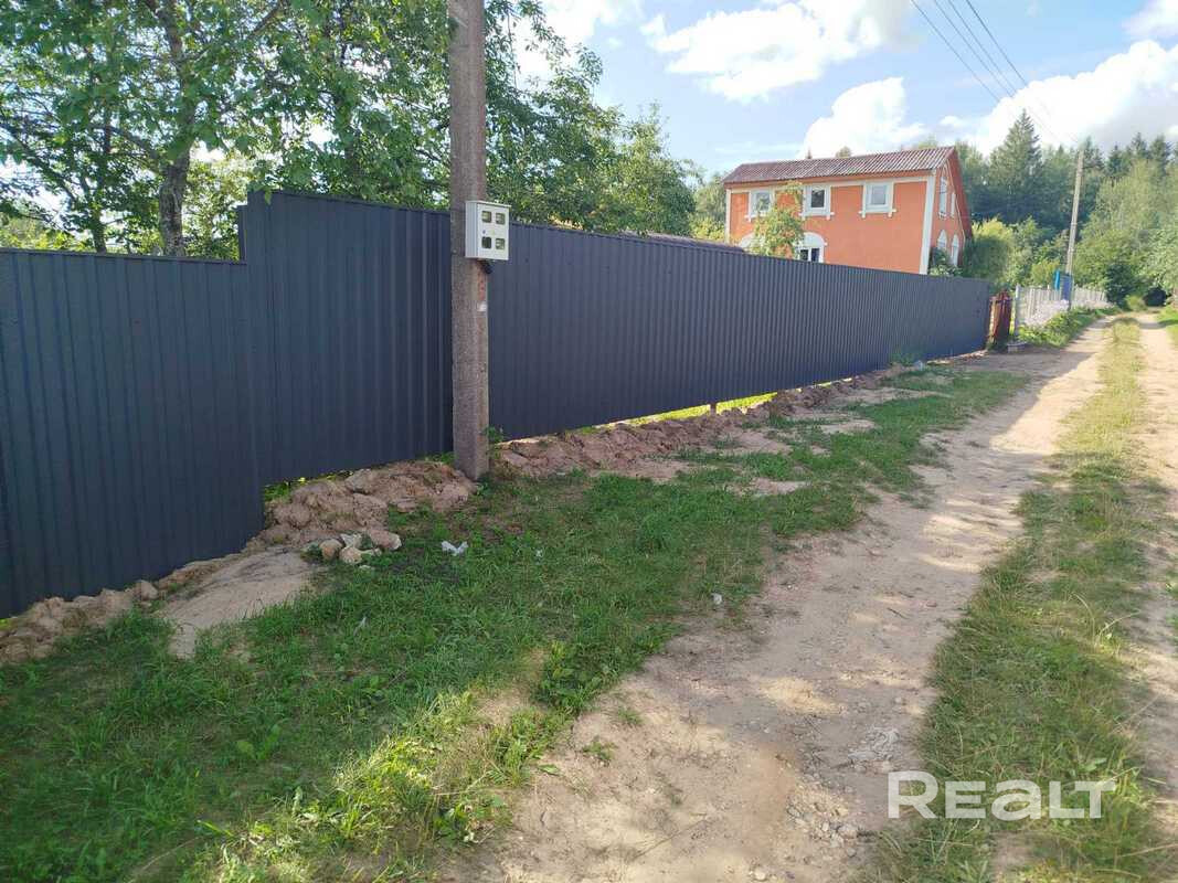 - Ограждение: Участок надежно огорожен по всему периметру. Со стороны дороги установлен забор с металл профиля высотой 1.7 метра с удобными калиткой и воротами.