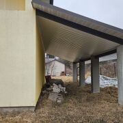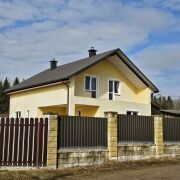 · Добротность и комфорт: входная металлическая дверь, откатные ворота, просторное крыльцо-веранда с хорошим видом и надежная лестница на второй этаж. Для автомобилей предусмотрен удобный навес на 2 машины.