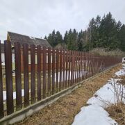 Участок уже огорожен со стороны дороги капитальным забором, а с внутренней стороны сеткой рабицей.
