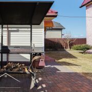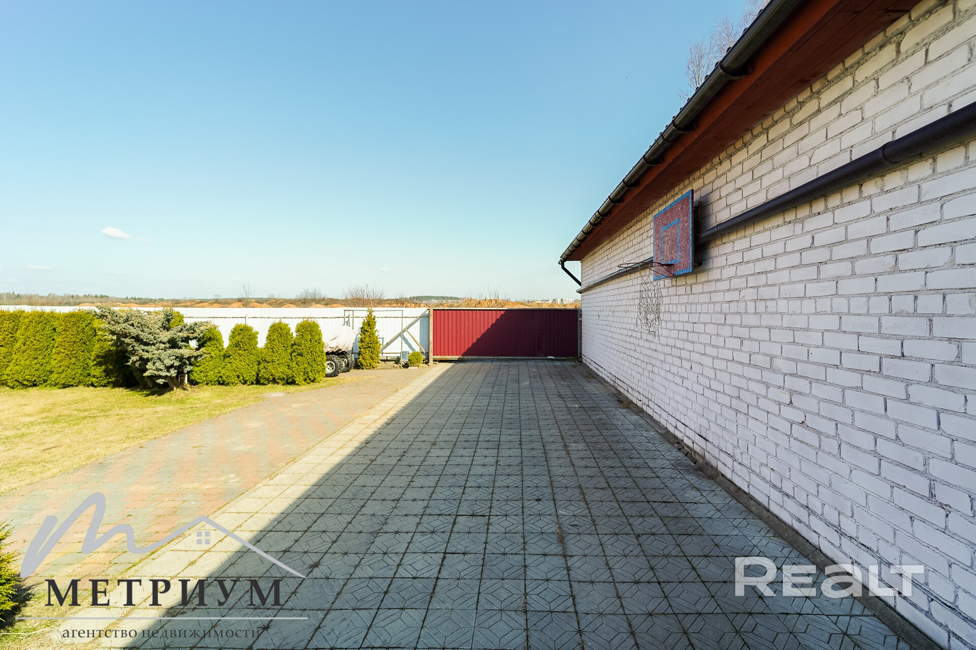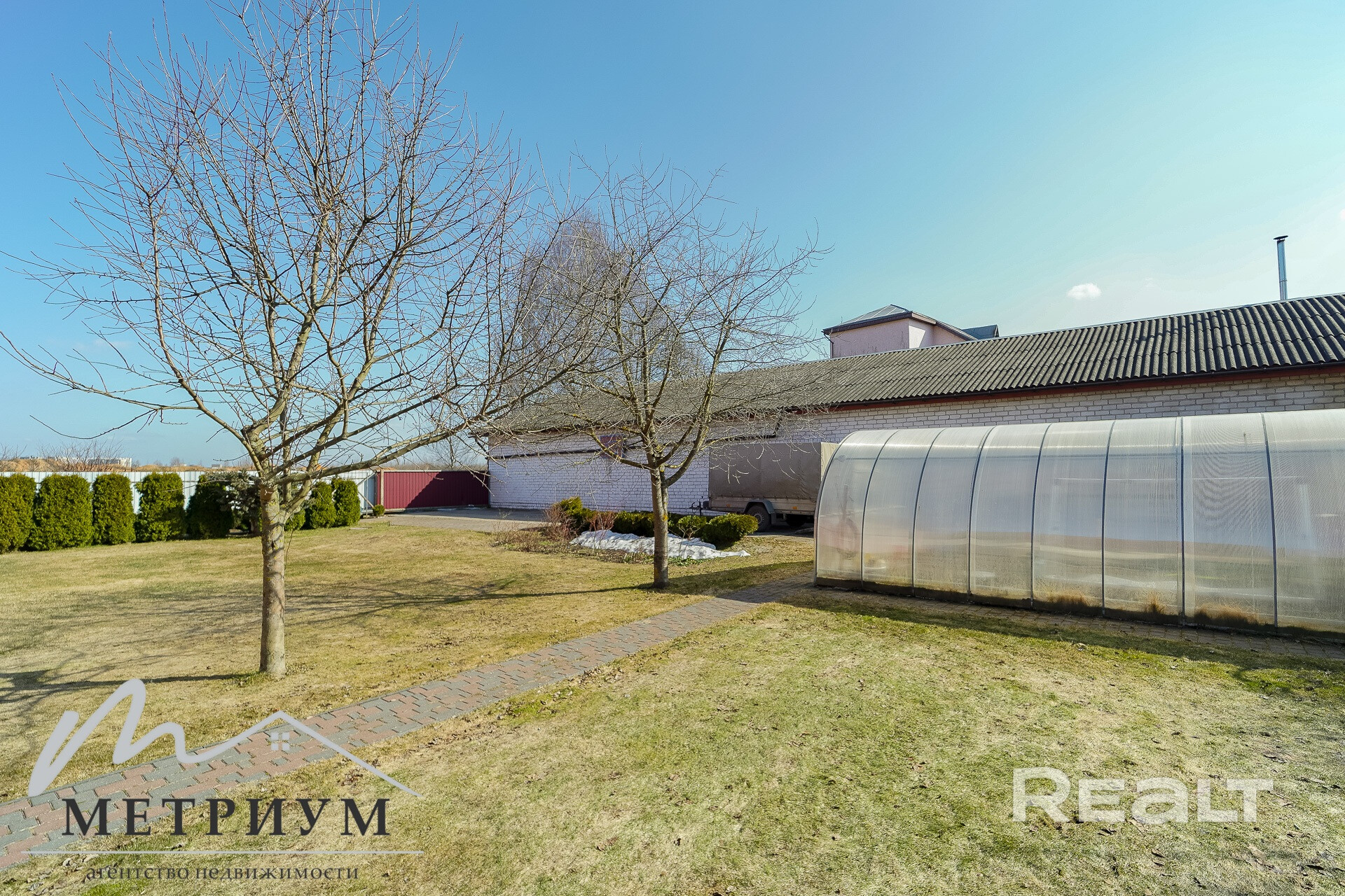 На территории выполнен ландшафтный дизайн: туи, плодовые деревья — черешня, яблоня, 10 кустов голубики, 2 куста черной смородины,  а также уютная зона отдыха с беседкой, отдельно стоящей русской баней с отоплением и подведенным водоснабжением. В бане  большая комната отдыха и установлен бассейн. Вход на мансардный этаж бани с улицы – можно использовать для хранения сезонных вещей и уборочного инвентаря.