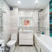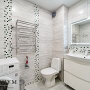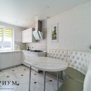 На втором этаже две жилые комнаты – 35,1 м2 и 11,7 м2, коридор с выходом на лоджию, большим санузлом и полноценной ванной. Кухня 11,2 м2 оборудована встроенной техникой, вытяжкой, посудомоечной машиной.