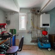 Экологичный бревенчатый дом обложен кирпичом и утеплен. Отопление – двухконтурный газовый котел, центральное водоснабжение, местная канализация. Крыша выполнена из металлочерепицы, окна – стеклопакеты  ПВХ, входная дверь – металлическая.