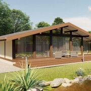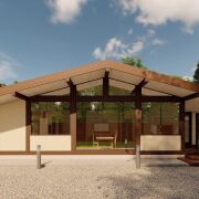 Конструктив дома выполнен из клеёного бруса сечением 200×200 мм - это прочность, долговечность, идеальная геометрия и благородный внешний вид натурального дерева. Такой дом не только выглядит статусно, но и обеспечивает высокий уровень надежности на десятилетия.