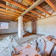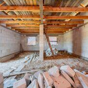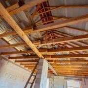 - Наружные и внутренние стены дома без отделки. Высота подкровельного пространства позволяет обустройство второго этажа.