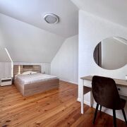 На втором этаже — две светлые спальни и дополнительное пространство под кабинет, игровую или зону для учёбы и хобби.