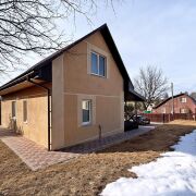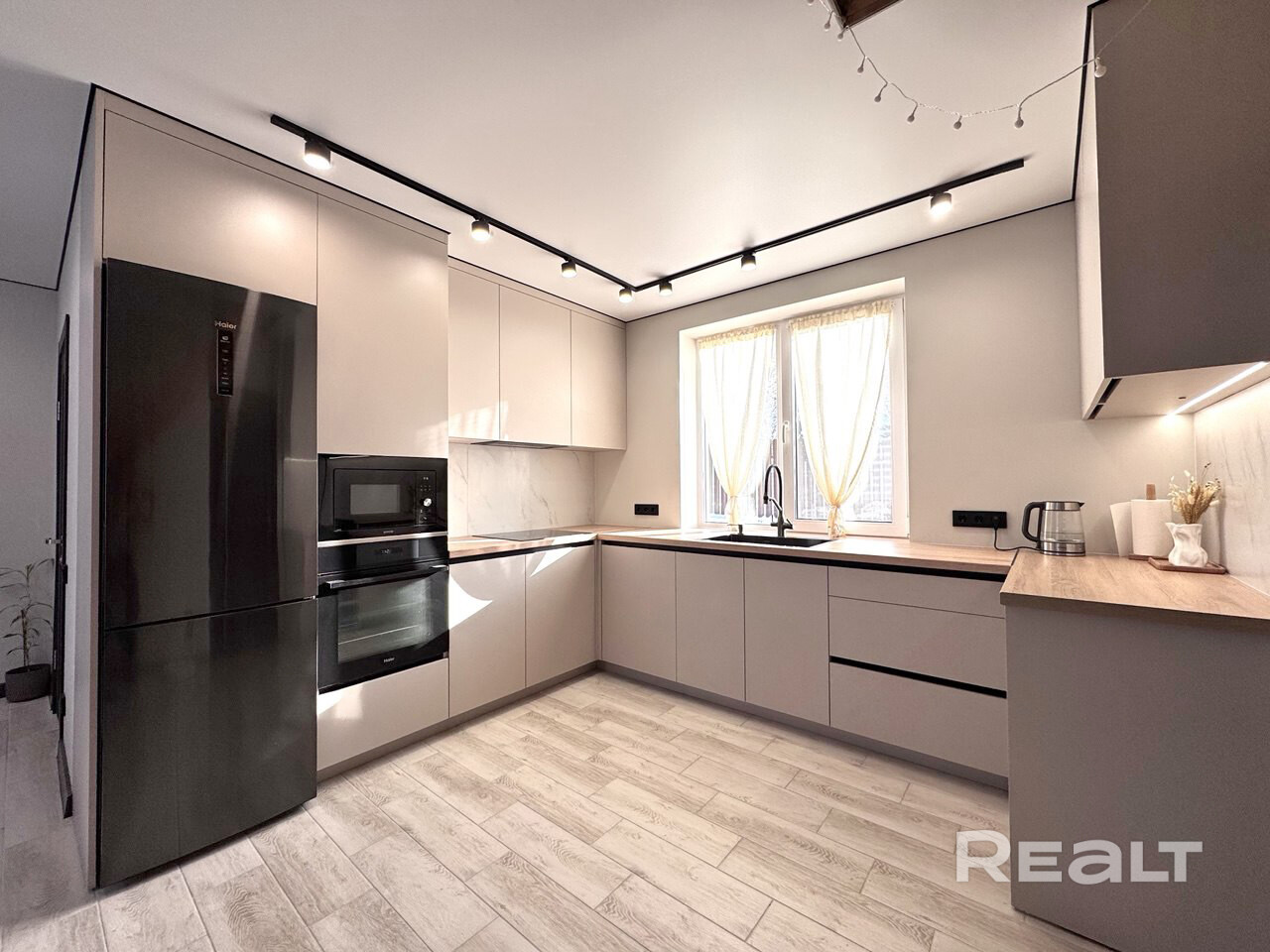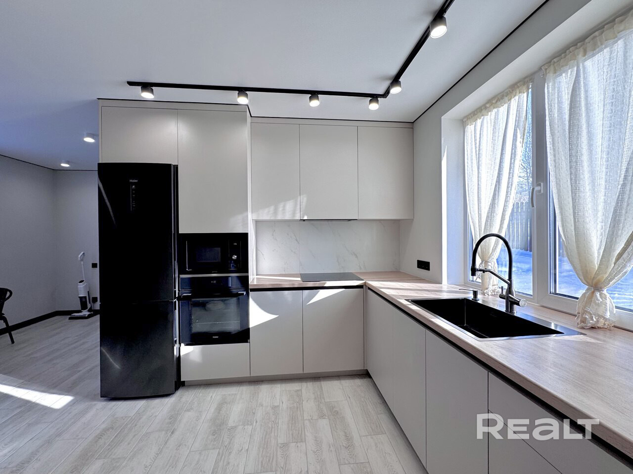 Двухэтажный дом 2023 года постройки, площадью 129,4 м2, расположен всего в 18 км от МКАД — вы рядом с Минском, но каждый день дышите чистым лесным воздухом.