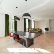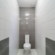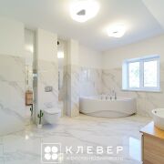 - Первый этаж — сердце дома. Гостиная 57,8 м2 с элегантным камином, где хочется собираться всей семьёй, и стильная кухня 21,4 м2 с техникой премиум-класса. Отдельный санузел добавляет удобства при приёме гостей. В отделке использованы качественные материалы: на полу — благородный дубовый паркет, в санузлах — керамическая плитка.