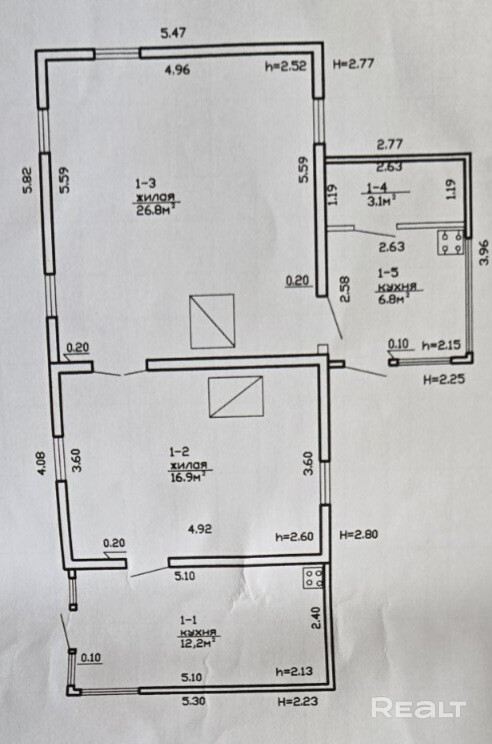 • Площадь кухни