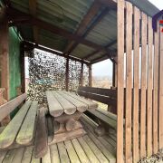 - Продумано место для отдыха где располагается беседка из бруса. Также новым владельцам остается теплица из поликарбоната.