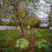 Участок ровный площадью 6,4 сотки в частной собственности. На участке растут плодовые деревья, кустарники и цветы, есть место под огород. Участок полностью огорожен.
